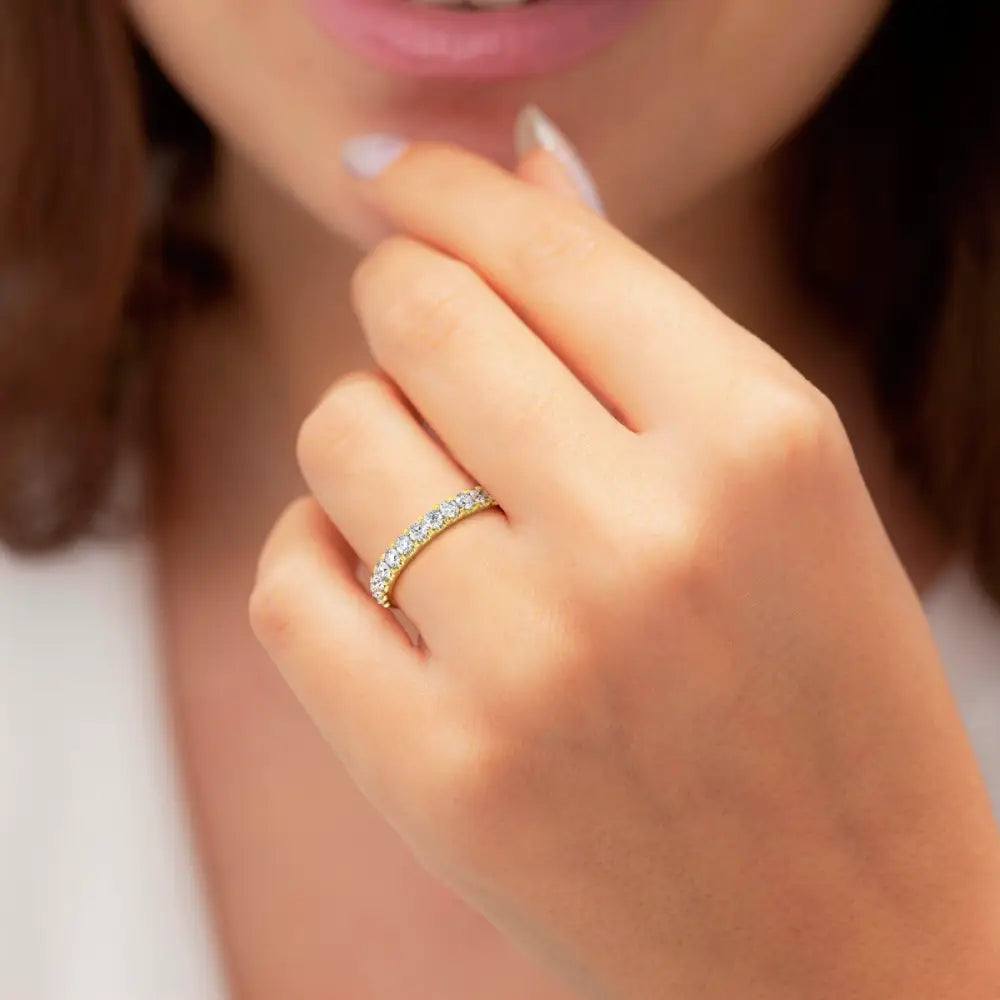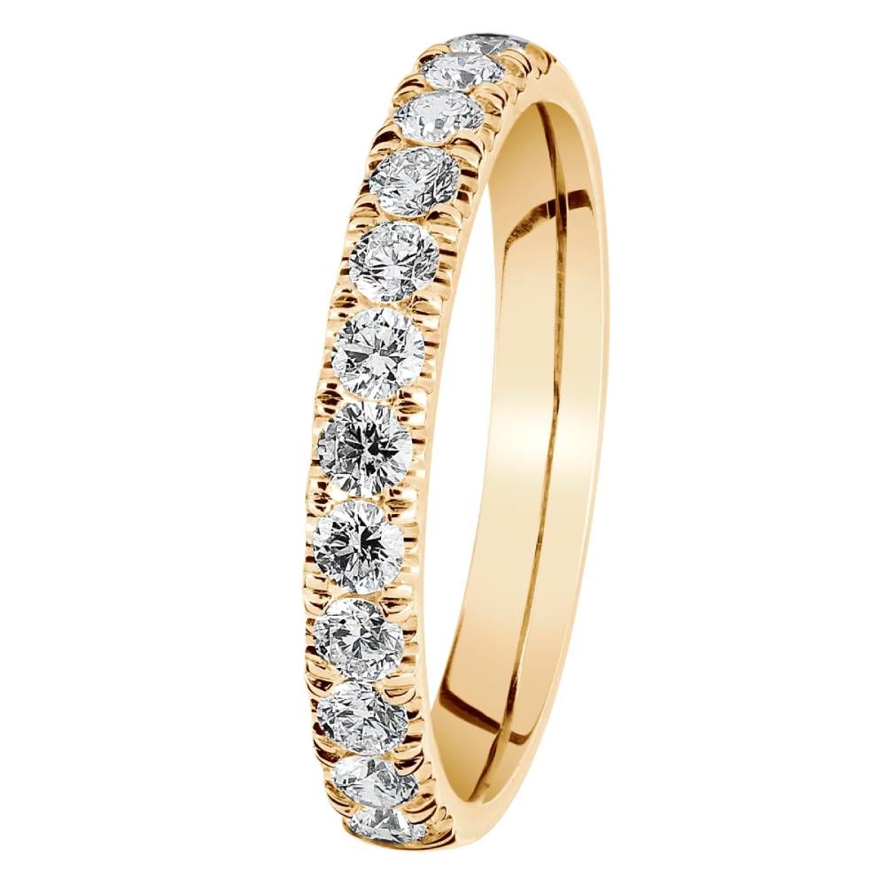 Kotimainen Kohinoor Vega rivitimanttisormus. Tässä keltakultaisessa rivisormuksessa säkenöivät näyttävän kokoiset timantit. Timanttisormuksen 2,9 mm levyistä runkoa koristavat 12 kappaletta 0,04 ct painoisia timantteja. Yhteensä sormuksessa on timantteja 0,48 ct painossa. Timanttisormus on valmistettu 14 karaatin valkokullasta.